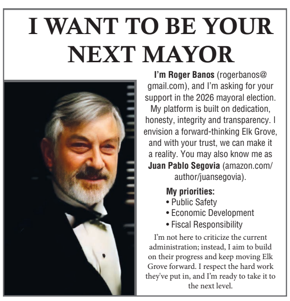 While Mr. Banos' mayoral campaign has created a presence on social media, he is also using a more traditional, albeit less popular, approach to marketing himself. That more conventional means is newspaper display advertising in Elk Grove's newspaper of record, the Elk Grove Citizen.