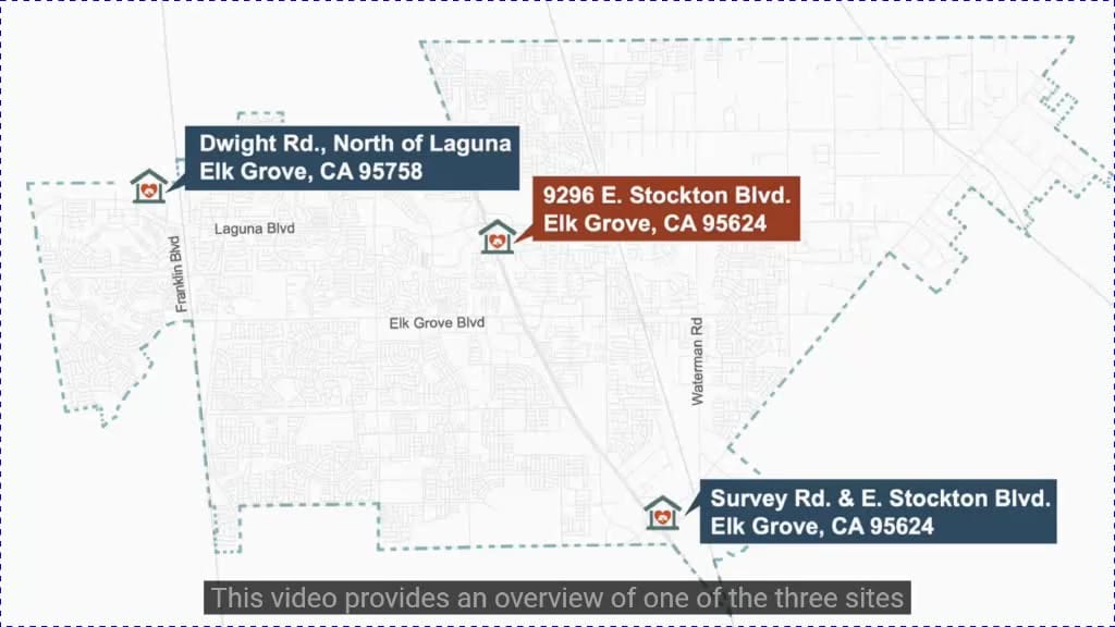 City officials are evaluating a 4-acre vacant lot on East Stockton Boulevard as a potential location for a future facility. That site is located at 9296 East Stockton Blvd., and the other possibilities are on Survey Road and East Stockton Blvd., near Grant Line Road and Highway 99, and Dwight Road north of Laguna Blvd (see videos and map below).