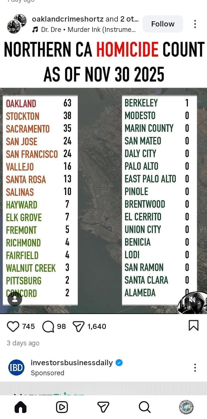 As seen on Meta's Instagram, the posting purported to list the "Northern CA Homicide Count as of November 30." To our surprise, Elk Grove was listed as number 10 with seven homicides.
